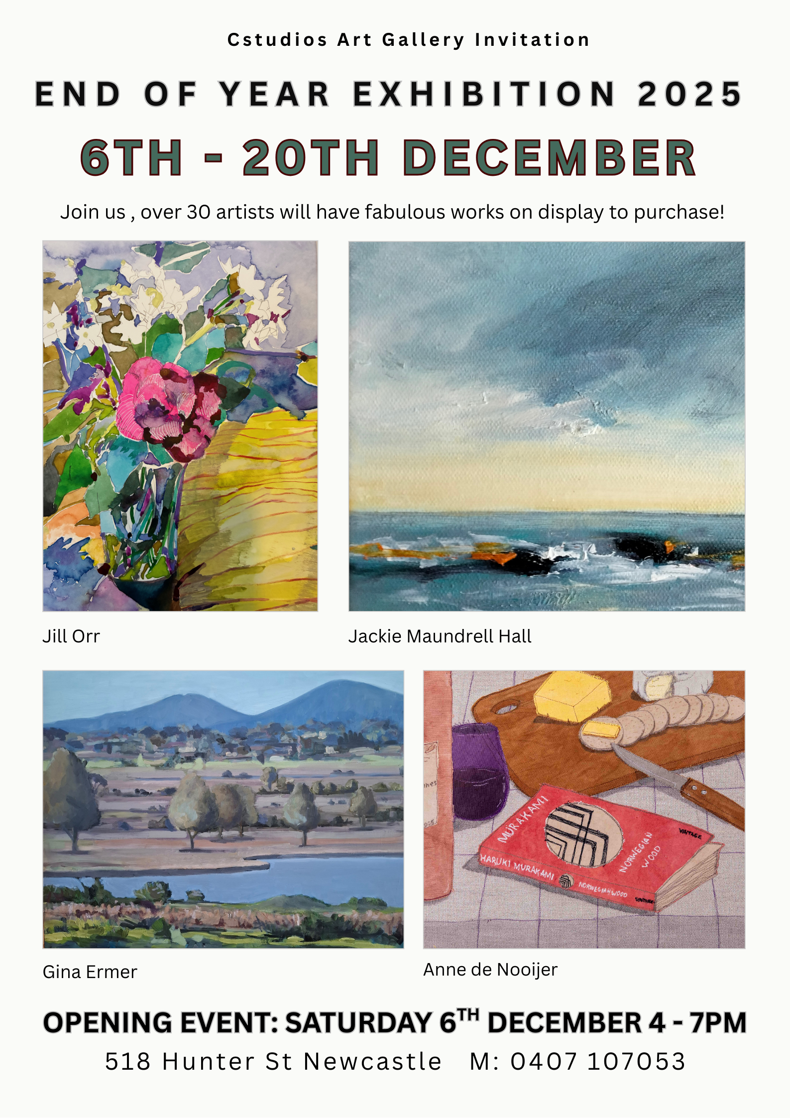 Cstudios will have monthly exhibitions, workshops and classes. To keep up to date, you can also check our Instagram and Facebook pages, or call 0407107053 for all inquiries.